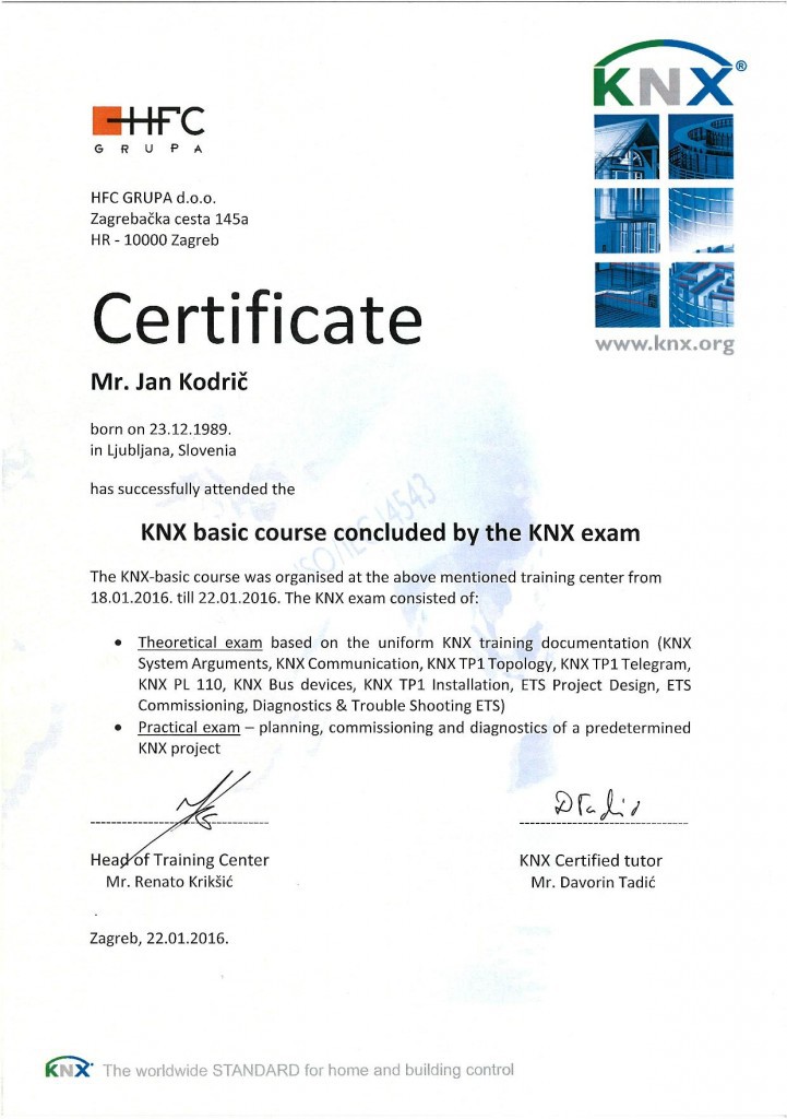 Pridobili smo tudi certifikat KNX za izvedbo pametnih inštalacij in tako postali uradni partner KNX organizacije, najdete nas na njihovi uradni spletni strani https://www.knx.org/knx-en/for-professionals/community/partners/index.php